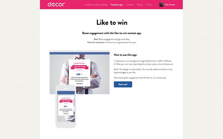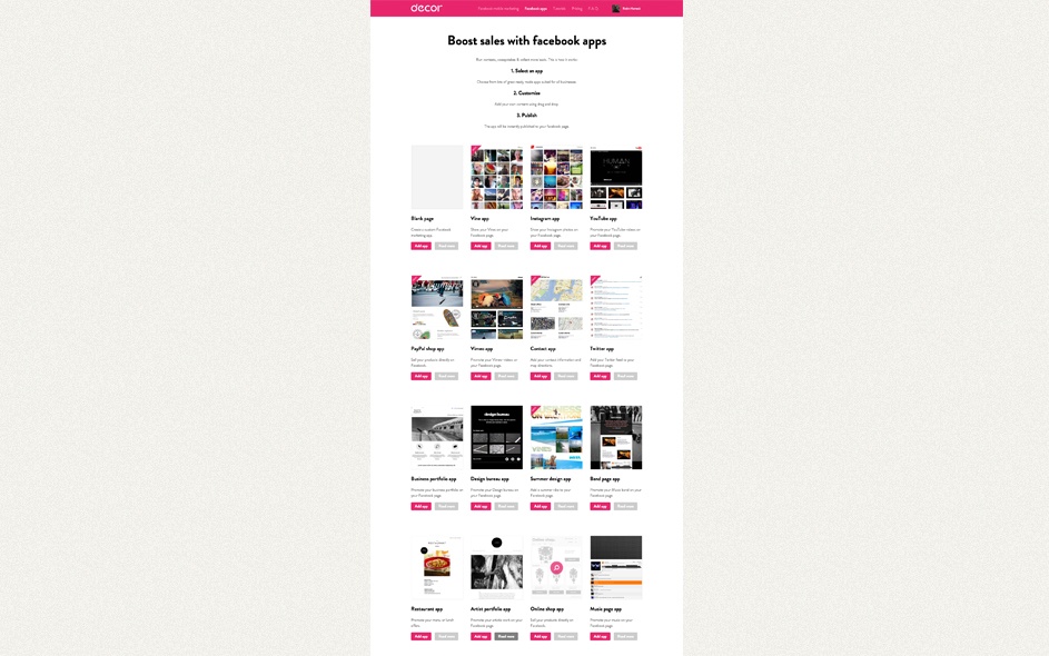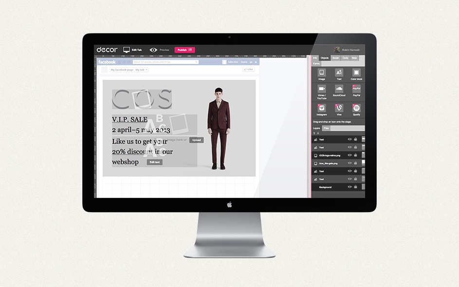 For small business owners who want to create business opportunities on Facebook, Decor is a Facebook page designer that helps you grow your business. Unlike similar products, Decor is really easy to use and no programming is needed.