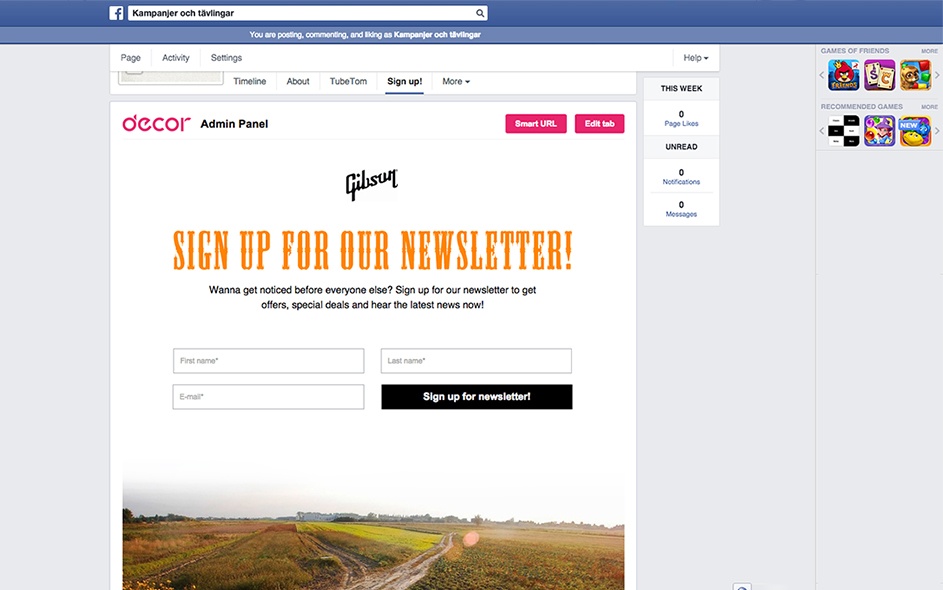 Decor Tab Creator is our own product, it’s a Facebook application that solves the problem of creating a great social media presence on Facebook. With Decor, you can design a custom Facebook page, without using any programming.