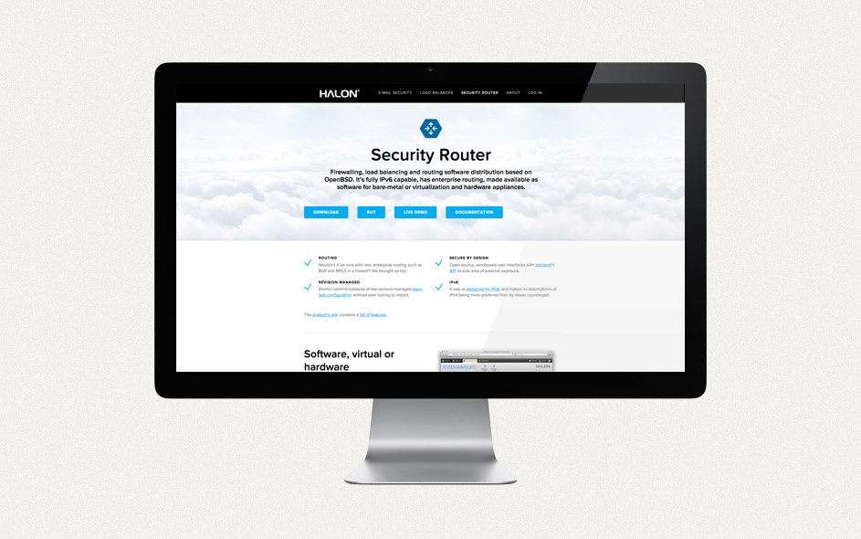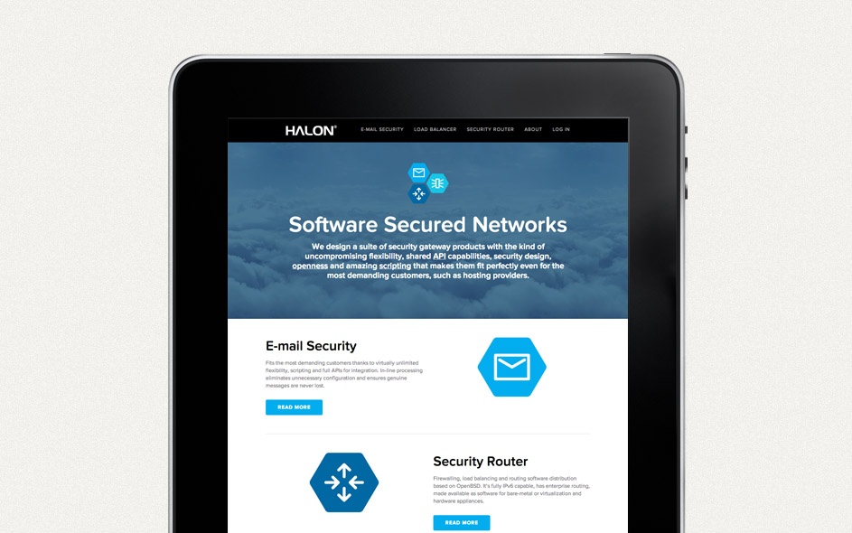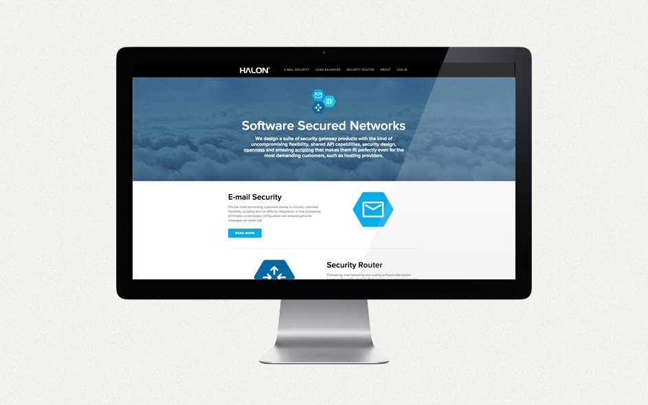 We were commissioned to develop a new graphic profile and website for the US launch. Halon’s three main products: E-mail Security, Secure Load Balancer and Secure Router were to be emphasised as a clear suite. Halon’s existing logo was not to be redrawn, but the graphic profile was to relate to it.