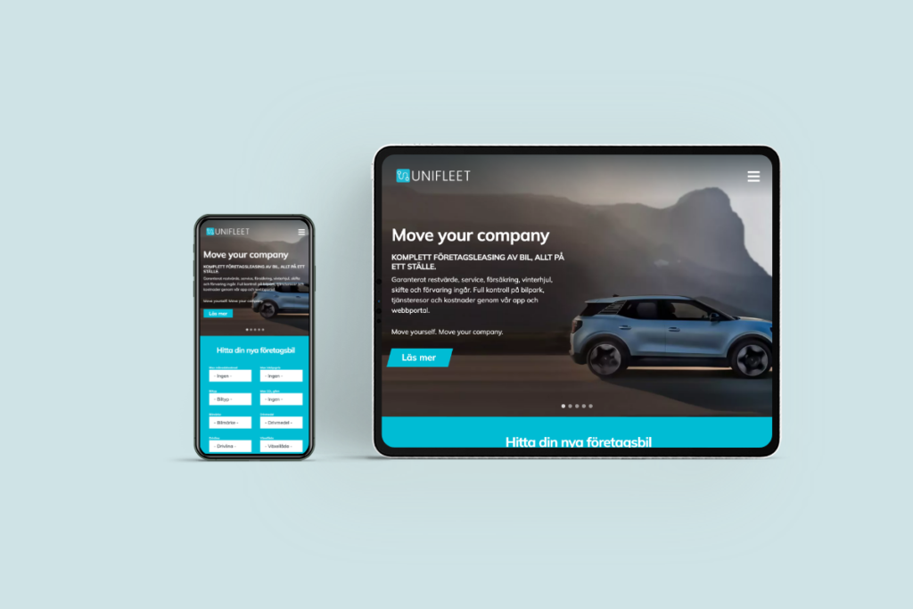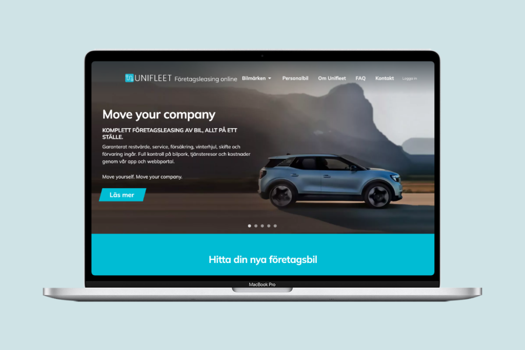 Unifleet är ett helt nytt sätt att ha företagsbil och tjänstebil. Beställ enkelt bil och företagsleasing online. Vi hjälper dig i hela resan, alltifrån frågor om bil till körjournal och fakturahantering. Hos oss får du leasing med allt i ett, vi tar hand om all administration och samlar kostnaden på en månadsfaktura. Du har full kontroll på bilpark, tjänsteresor och kostnader genom Unifleets app och webbportal. Vi tar hand om dina tjänstebilar och du sparar tid och pengar. Det är precis så enkelt och smidigt det kan bli att ha företagsbil.